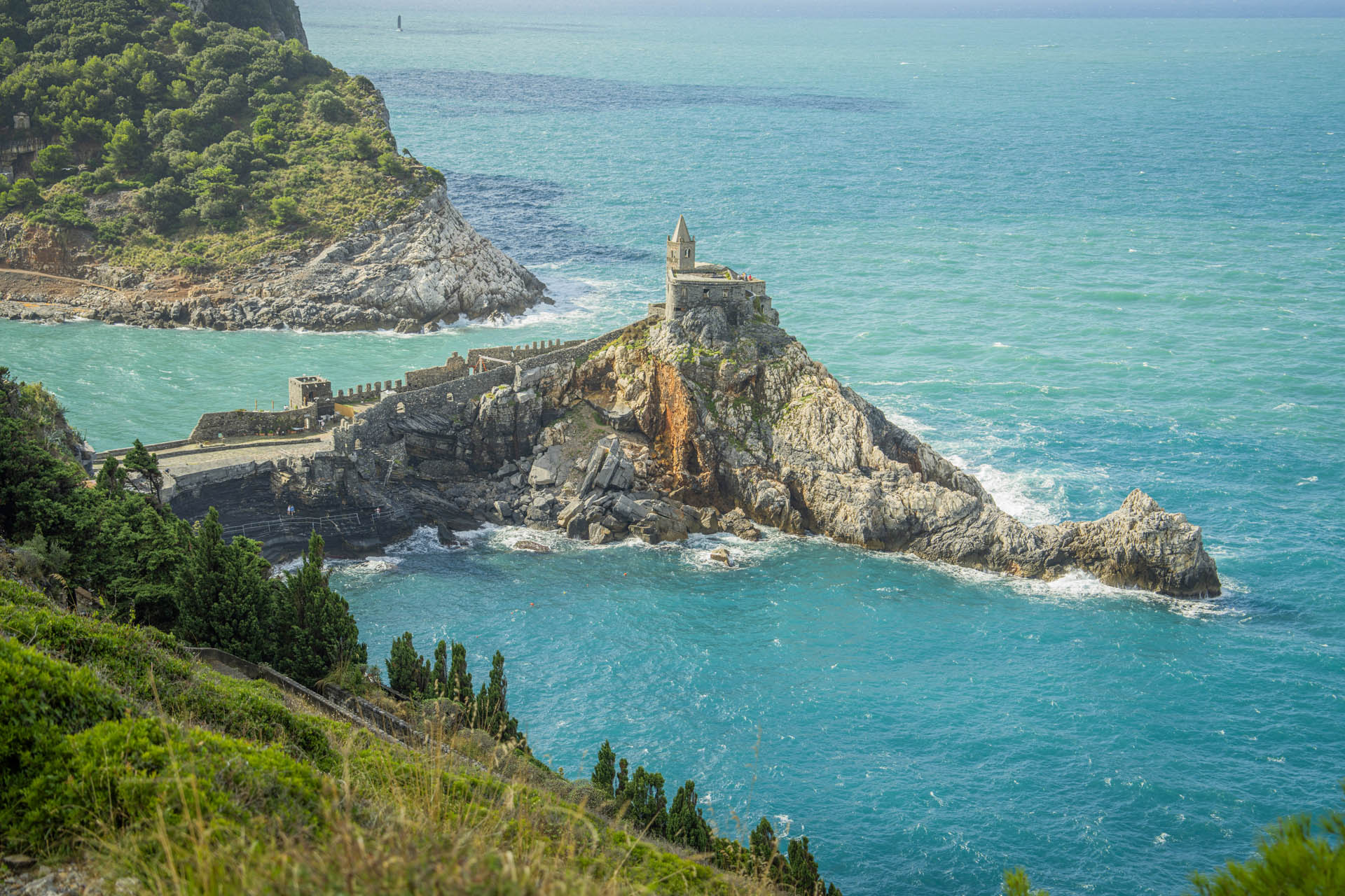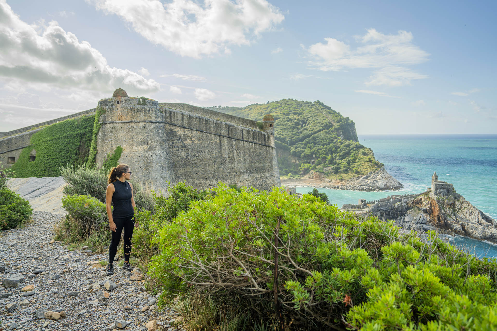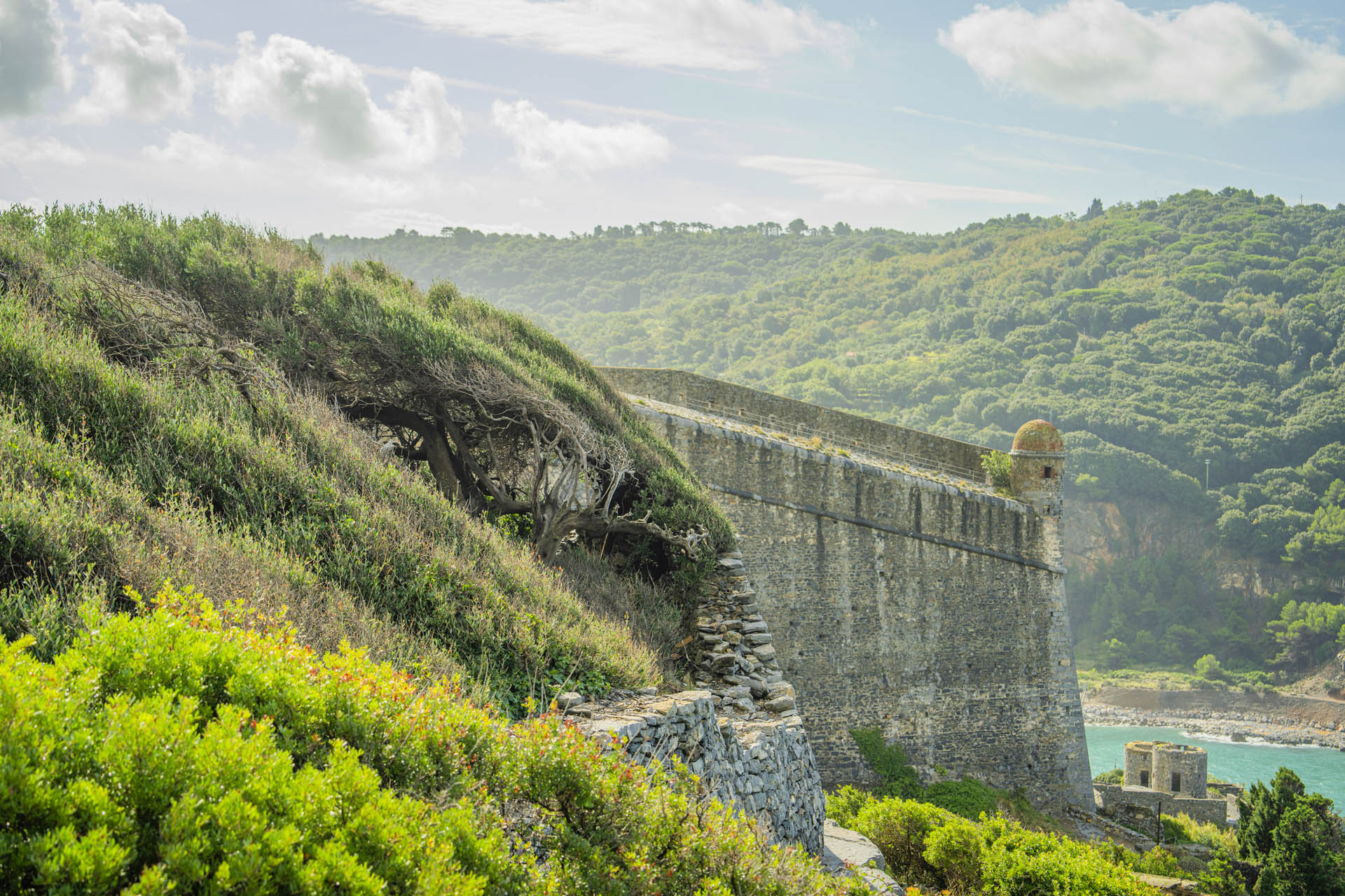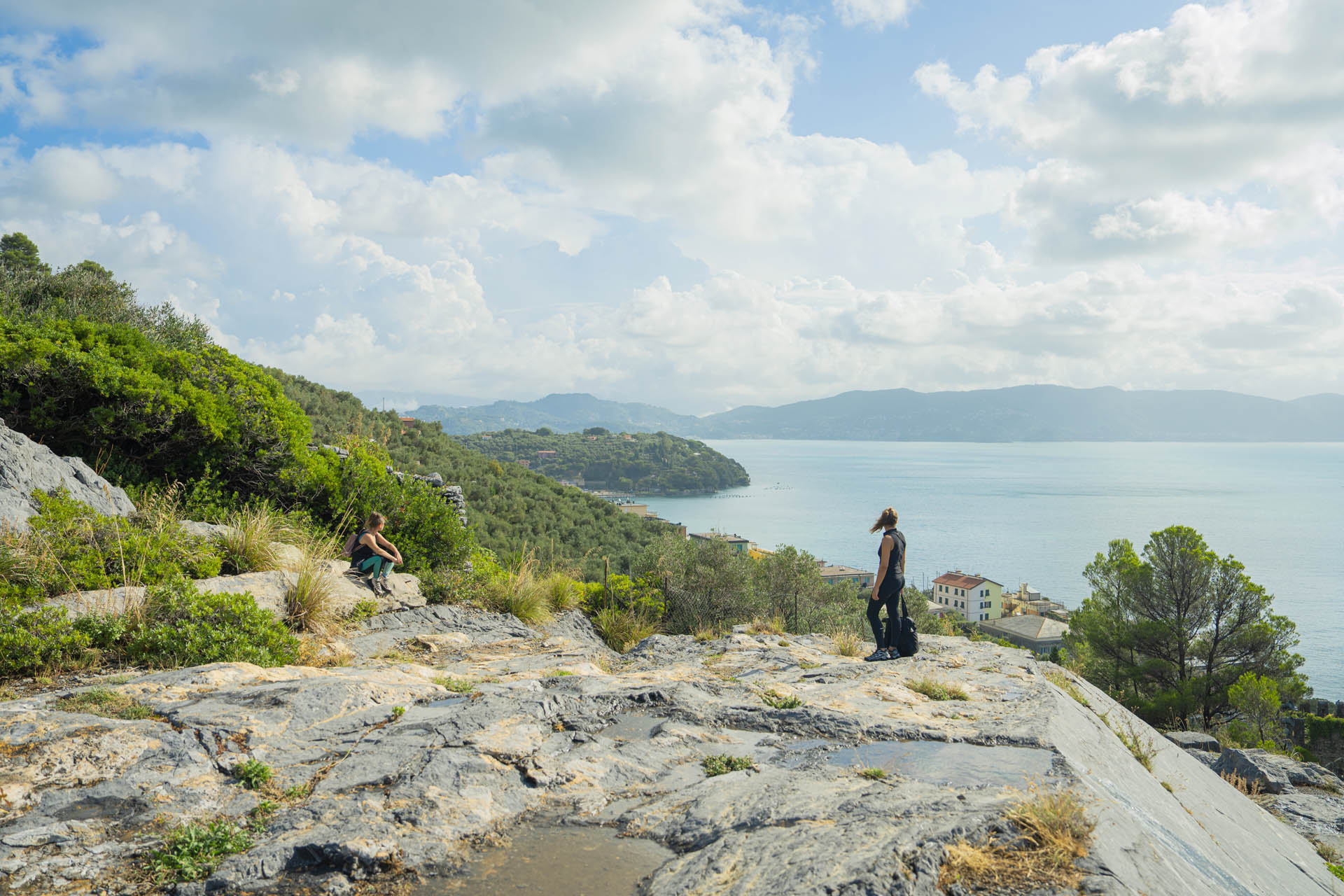 Superata la salita, si apre una vista panoramica sul mare e sulle isole del Tino e della Palmaria, che rappresentano componenti integranti del sito, custodi di valori naturali, spirituali e militari, oltre che di biodiversità e testimonianze archeologiche.