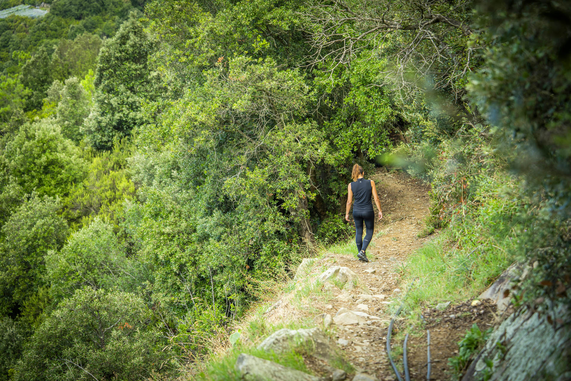 Si prosegue a sinistra lungo l’AV5T in direzione Campiglia e Telegrafo, abbandonando la strada carrozzabile sulla destra. Dopo un tratto in salita, si incrocia nuovamente la carrozzabile, che si segue per alcune centinaia di metri. In corrispondenza del cartello indicante “Campiglia”, si lascia la carrozzabile e si imbocca a sinistra il sentiero per Telegrafo e Termine.